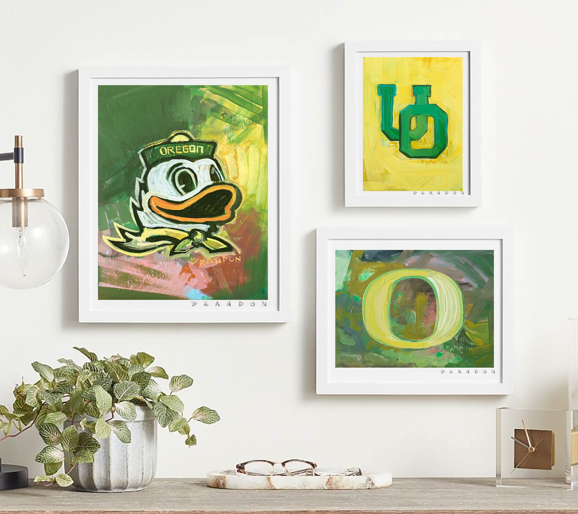 Oregon Ducks Officially-Licensed 3-Piece Championship Print Collection by Brandon | Archival-Quality Giclee Art Print Set for Gallery Wall